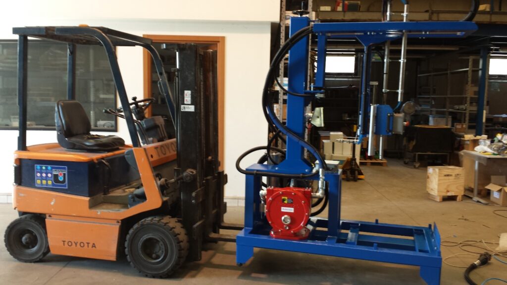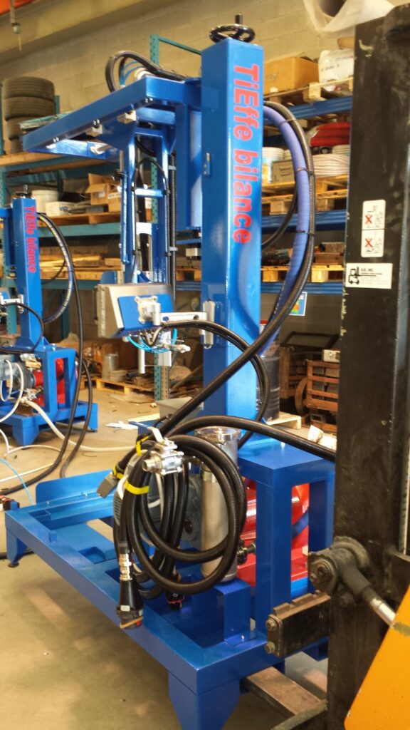 Date le caratteristiche dei prodotti da gestire e quelle dei contenitori previsti risulta impossibile utilizzare un singolo sistema di riempimento. Si opta quindi per una stazione fissa a 2 teste che possa dosare i prodotti negli IBC e nei fusti e di uno skid mobile che possa fare la stessa cosa nei fustini. I target sono ampi, si va dai 1000 kg per gli IBC, ai 300 kg per i fusti ai 5 kg per i fustini.