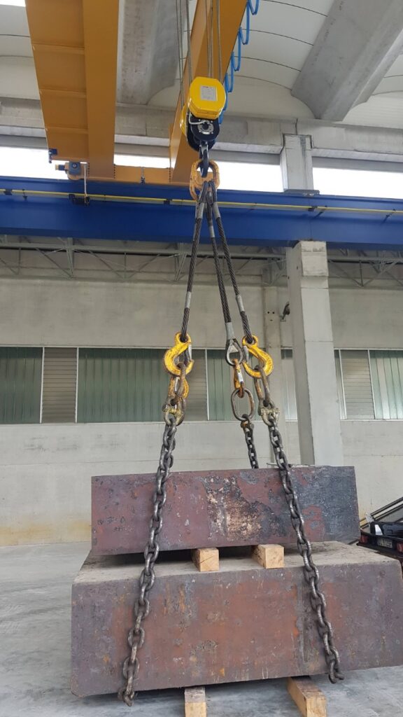 L’esigenza è quella di avere un sistema di pesatura applicato direttamente al carroponte, per evitare riduzioni di altezza e scomode gestioni di altri sistemi frapposti tra il gancio del bozzello ed il carico da sollevare.