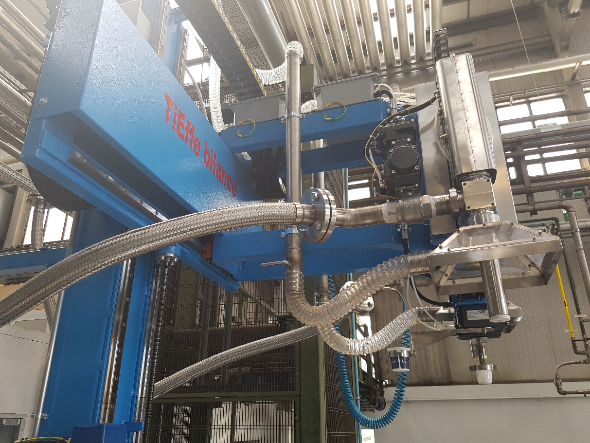 Il successo è tale da portare alla realizzazione di un portale completo di un sistema di riempimento a due teste che in automatico possa riempire 14 IBC disposti in linea