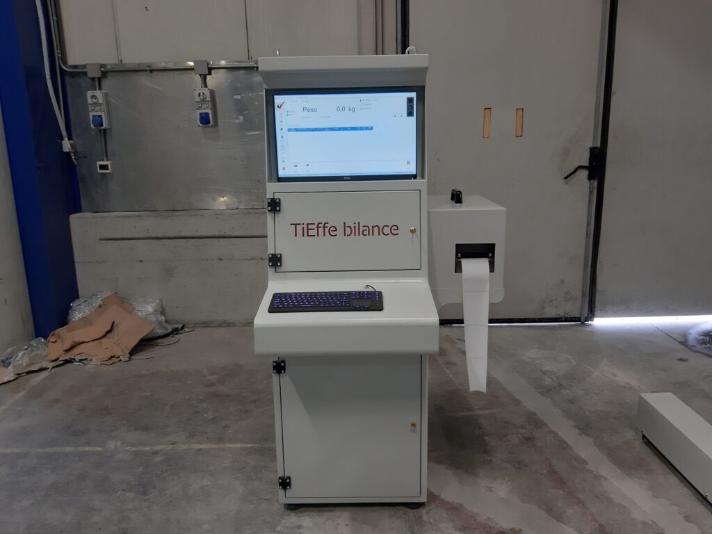 La soluzione proposta, accettata ed installata prevede una piattaforma di pesatura che accoglie il carrello, un sistema a fotocellule in automatico ne legge gli assi. Un software da PC scritto appositamente da TiEffe elabora i dati, gestendo un archivio tare dei carrelli. Riconoscendo il carrello in transito sulla bilancia, avendo in archivio le relative tare, il software restituisce ne il netto. Un’etichettatrice dedicata produce l’etichetta contenente tutti i dati richiesti e necessari.