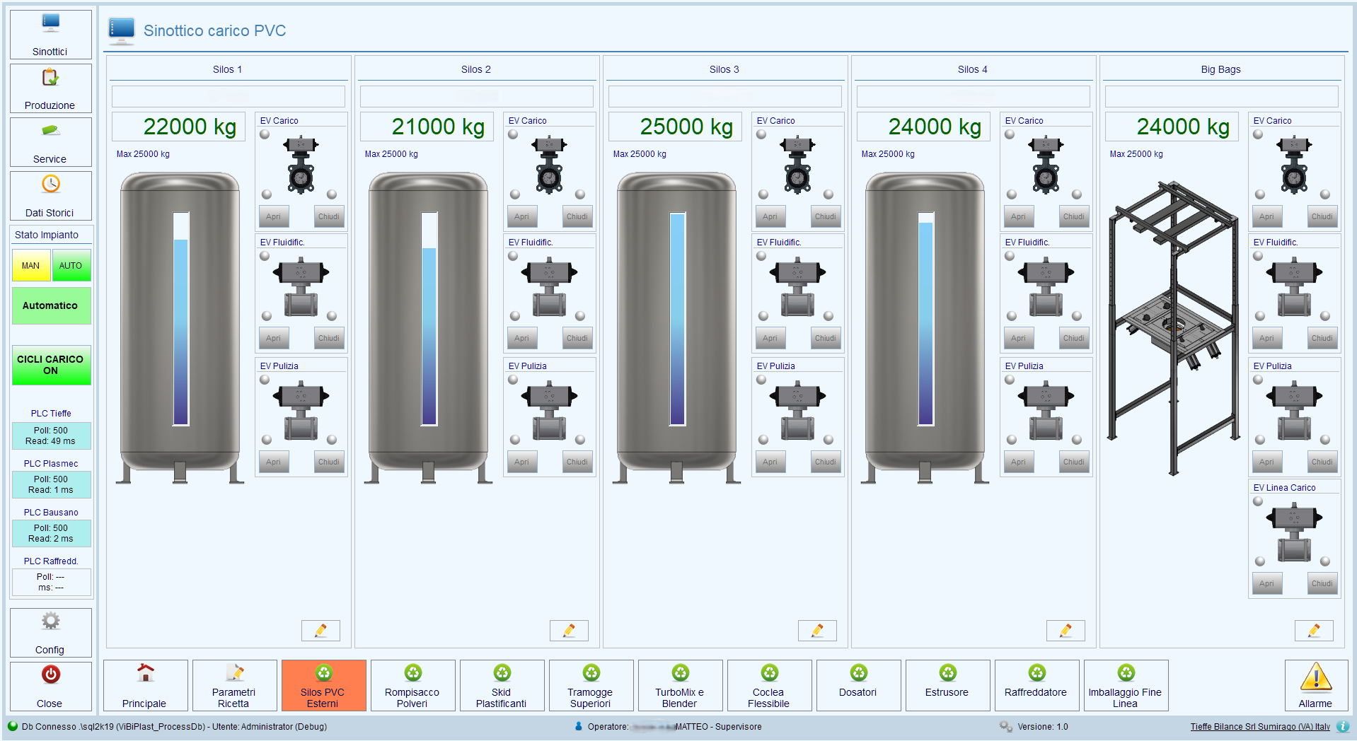 I nostri sistemi di pesatura offrono misure affidabili, sicurezza strutturale e integrazione completa con i sistemi aziendali (ERP, MES, WMS), fornendo dati in tempo reale. Questo consente anche di automatizzare dosaggi, miscelazioni e rifornimenti, migliorando efficienza, continuità produttiva e controllo totale degli stoccaggi.
