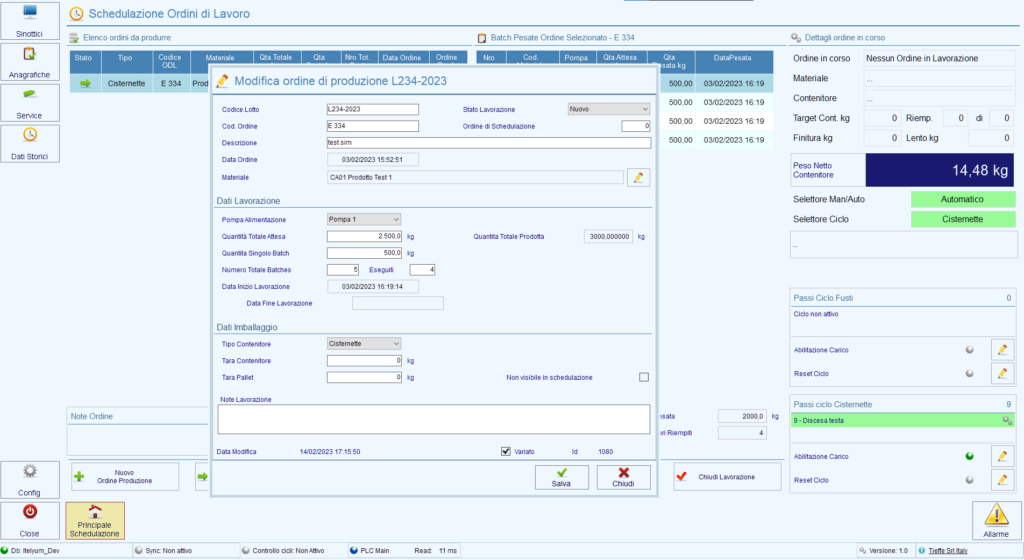 – Supervisione ciclo di lavoro su pannello operatore